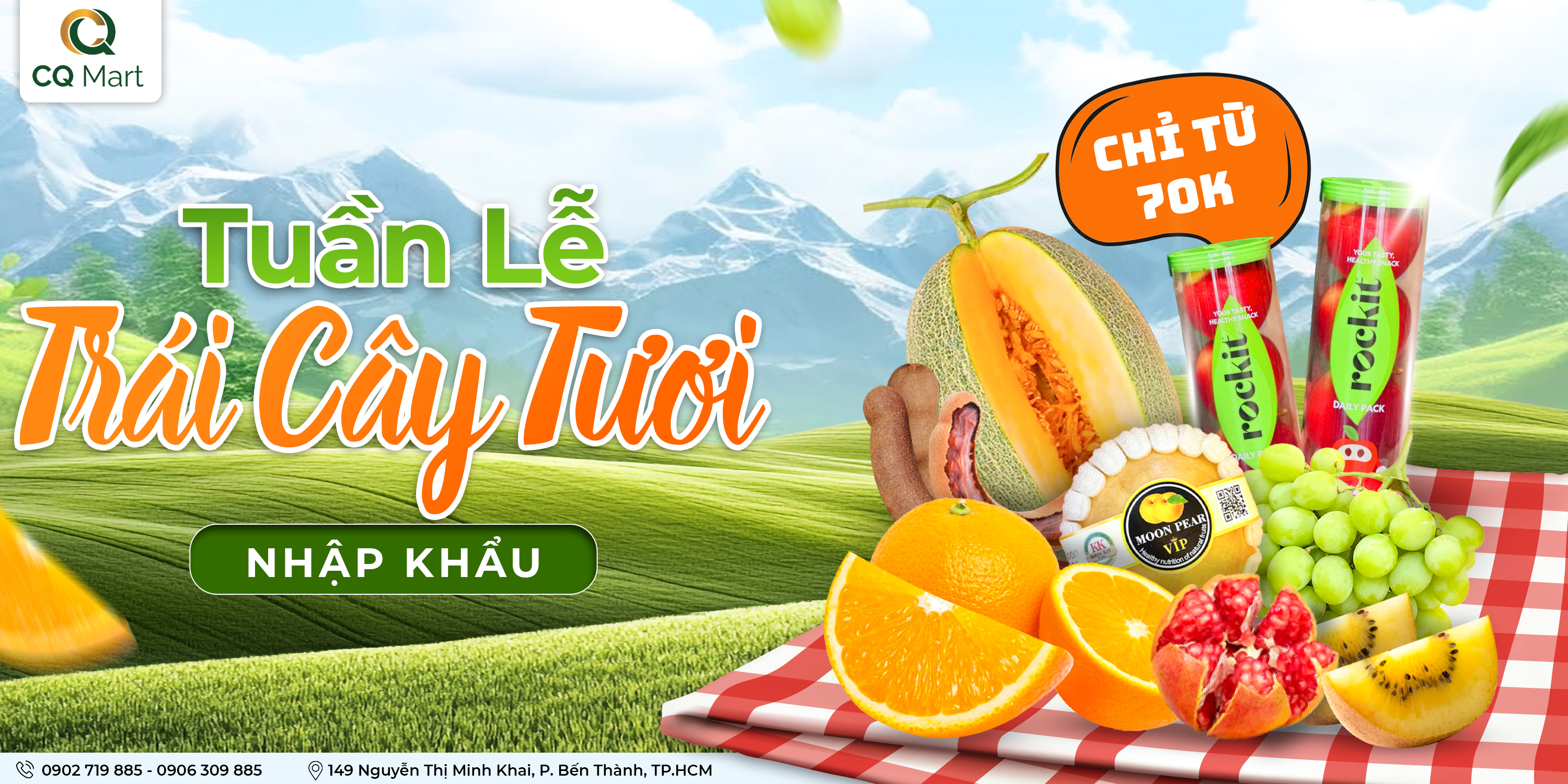 Khi sức khỏe trở thành ưu tiên hàng đầu, việc lựa chọn nguồn dinh dưỡng sạch – an toàn là điều quan trọng. Trái cây nhập khẩu tại CQ Mart mang đến chất lượng ổn định, hương vị tự nhiên và giá trị dinh dưỡng cao, phù hợp cho cả nhu cầu sử dụng hằng ngày lẫn biếu tặng. Mùa này, hãy chủ động “nạp vitamin” để tăng đề kháng và giữ phong độ tốt nhất. CQ Mart luôn sẵn sàng đồng hành cùng bạn và gia đình với những sản phẩm được tuyển chọn kỹ lưỡng nhất.