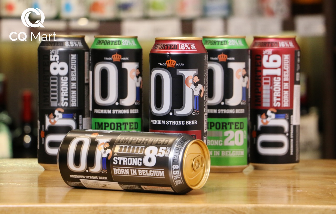 - OJ beer, thương hiệu bia Bỉ chất lượng cao hứa hẹn đem đến một trải nghiệm thú vị độc đáo phía trước. O.J Strong Imported nổi bật với nồng độ cồn 20% hứa hẹn đem đến hương vị và trải nghiệm tuyệt vời cho người uống.