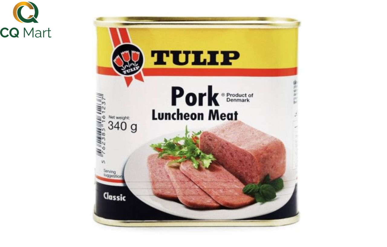 - Thịt heo hộp Tulip được chế biến từ thịt heo, ba rọi, bột khoai tây, protein sữa, muối, gia vị… với Tulip Jamonilla Pork Luncheon Meat with Bacon được lấy cảm hứng từ Tulip Luncheon Meat thêm chút hương vị thịt xông khói cho nhiều món ăn truyền thống, đơn giản trở nên đa dạng và hấp dẫn. Mang hương vị thịt hòa quyện, rất tuyệt để ăn kèm với cơm, mì, bánh pizza và sandwich.