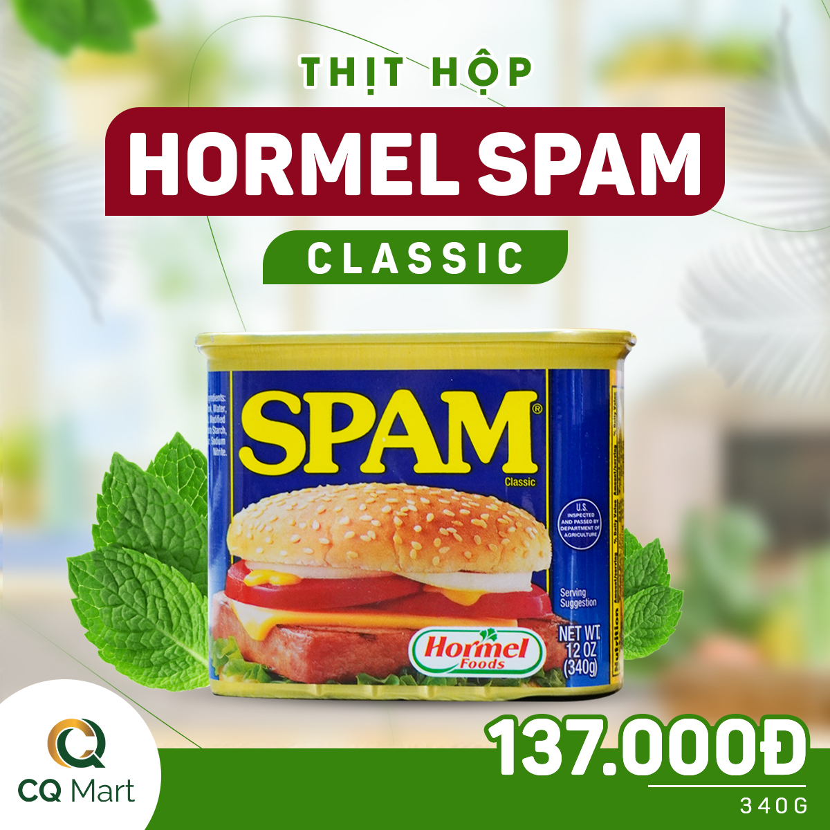 Hormel Spam Classic – Vị béo nhẹ, mềm mịn, đậm đà, cực kỳ nổi tiếng và được nhiều gia đình yêu thích.