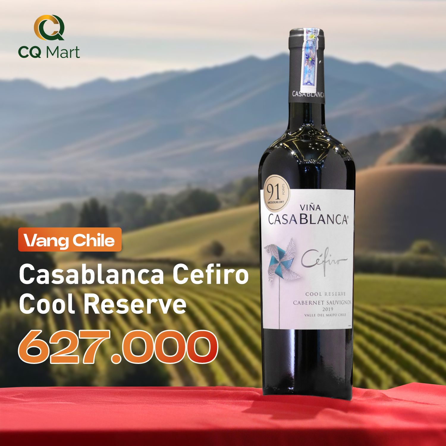 Casablanca Cefiro Cool Reserve đến từ vùng Casablanca nổi tiếng của Chile, nơi khí hậu mát mẻ giúp nho giữ được độ tươi và hương vị cân bằng.