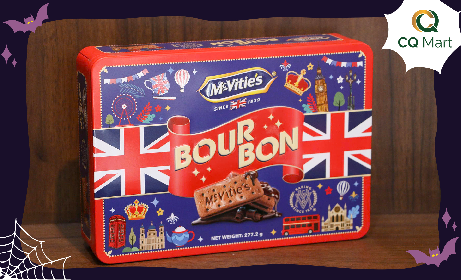 Hai lớp bánh quy cacao kẹp giữa là lớp kem socola đậm đà, tạo nên hương vị cân bằng hoàn hảo – vừa đủ ngọt, vừa đủ giòn. Mỗi chiếc bánh như một “nụ cười” nhỏ trong buổi tiệc Halloween, khiến bạn không thể dừng lại ở một miếng. CQ Mart cam kết mang đến bánh nhập khẩu chính hãng, hương vị chuẩn Anh – giòn tan và ngọt dịu, chứ không ngọt gắt như nhiều loại bánh thông thường trên thị trường.