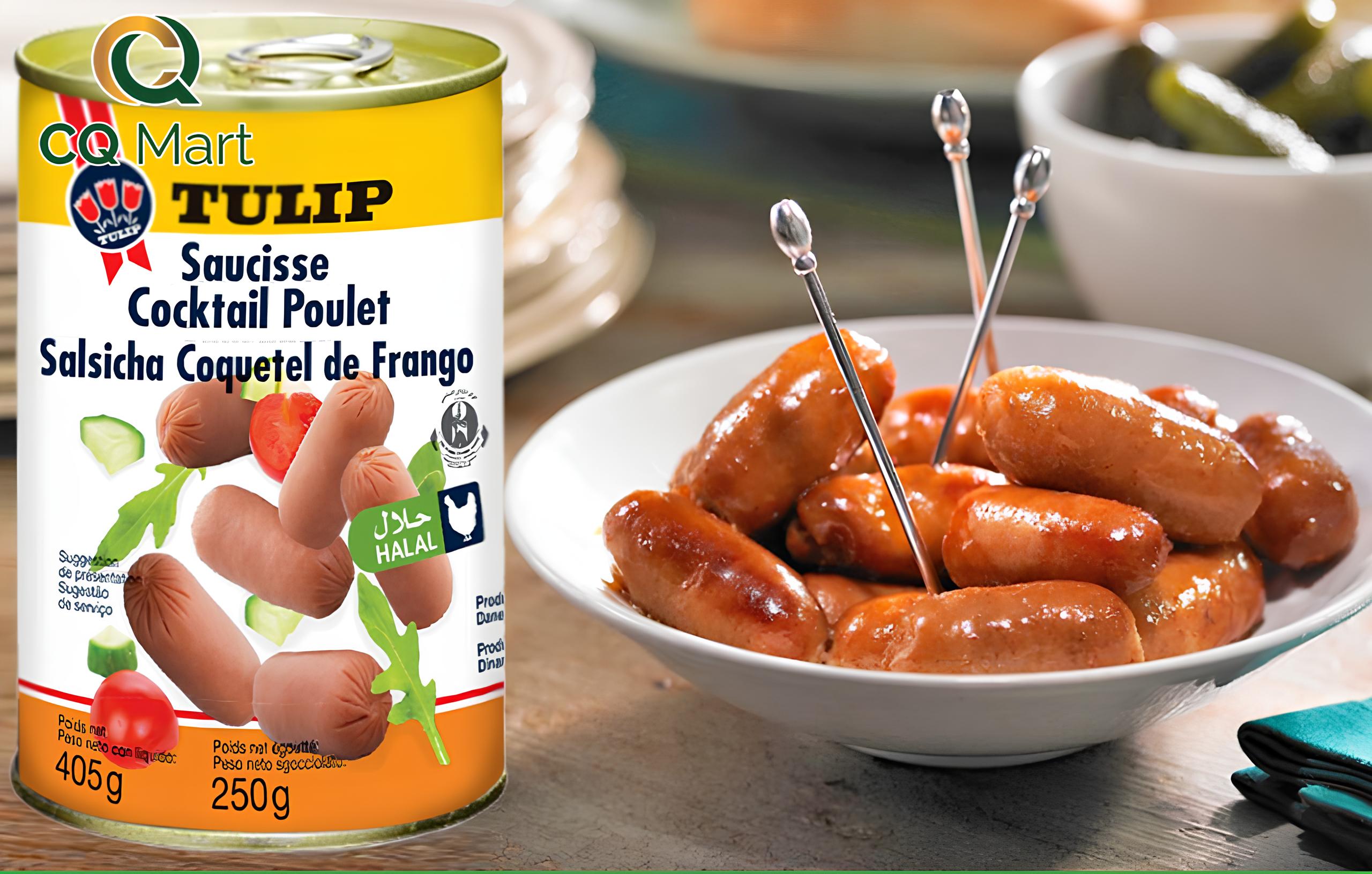 - Với công thức chế biến đặc biệt, phù hợp khẩu vị của nhiều người, Xúc Xích Gà Cocktail Đóng Hộp Tulip đảm bảo mang đến bữa ăn nhẹ đầy đủ chất dinh dưỡng và hương vị thơm ngon đặc trưng cho cả gia đình.